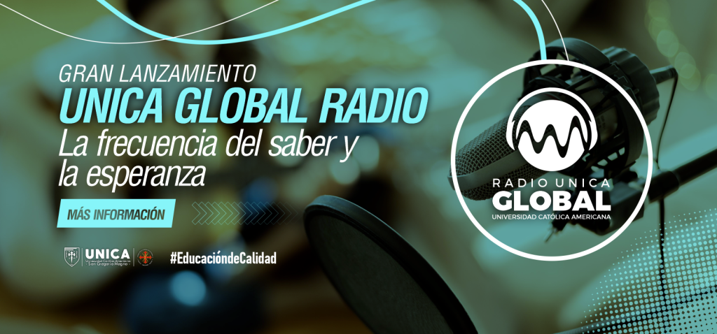 La Universidad Católica Americana San Gregorio Magno — UNICA anuncia el lanzamiento de RADIO UNICA GLOBAL, su emisora institucional concebida como un espacio de encuentro entre fe y razón, donde la comunicación se convierte en puente para la formación integral, la evangelización creativa y el diálogo académico abierto. La emisora se fundamenta en tres pilares: claridad institucional, compromiso social y espiritualidad universitaria, que orientarán cada programa hacia la construcción de una comunidad académica más sólida y esperanzada.