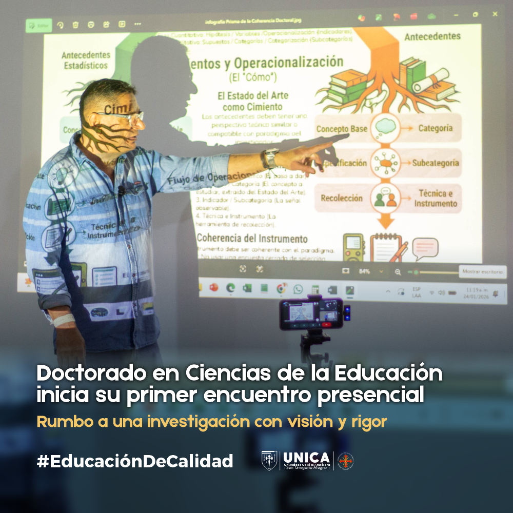 La actividad se realizó el sábado 24 de enero y fue liderada por la Coordinadora de Posgrados, Dra. Sorener Muentes, junto a los docentes Dr. Jorge Barboza y Dr. Lewis Pereira, y contó con la participación de los doctorandos presentes en el campus y de quienes se conectaron de forma virtual. En su intervención de bienvenida, la Coordinación de Posgrados destacó la disposición del cuerpo docente y el compromiso de los estudiantes como pilares para el éxito del programa.