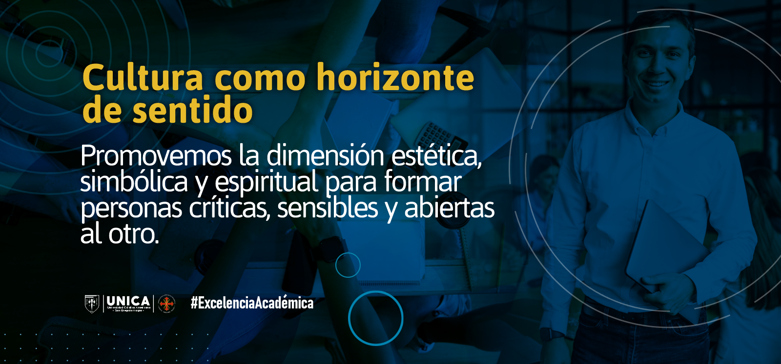Desde una perspectiva filosófica y teológica, la cultura se asume como un espacio privilegiado para el encuentro entre fe y razón, entre tradición y contemporaneidad, entre arte y espiritualidad. En coherencia con el Proyecto Educativo Institucional (PEI), UNICA entiende la cultura no solo como una manifestación estética, sino como un horizonte de sentido que atraviesa todas las dimensiones del quehacer universitario y que permite habitar el mundo con conciencia crítica, sensibilidad ética y apertura al otro.