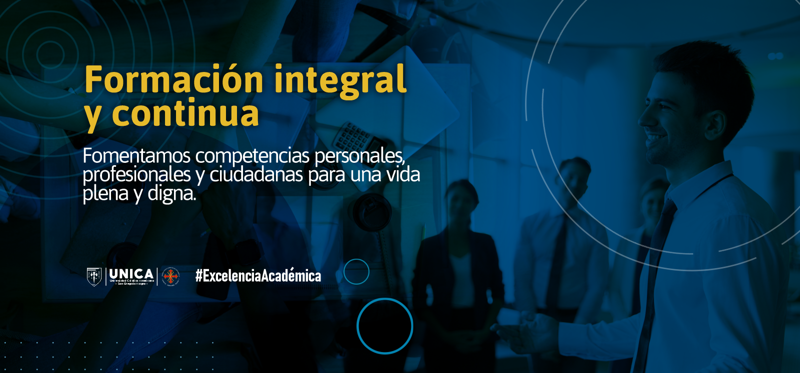 Desde su identidad católica y humanista, UNICA orienta este modelo hacia el desarrollo de competencias personales, profesionales, ciudadanas, digitales, laborales y éticas, con el propósito de potenciar la empleabilidad, la ciudadanía activa, la formación para la paz, el emprendimiento, el liderazgo comunitario y la dignificación de la vida en todas sus etapas.
